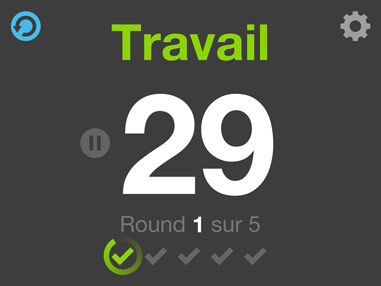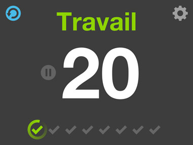 Vous définissez les périodes de Travail/Repos & un nombre de rounds avec les couleurs, animations & des sons