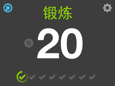 8 回合:20 锻炼 / :10 休息,多达 8 种锻炼,包含颜色、动画和扩声