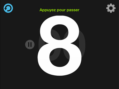 8 tours de : 20 Exercices / :10 Repos jusqu’à 8 exercices avec de la couleur, des animations et des sons